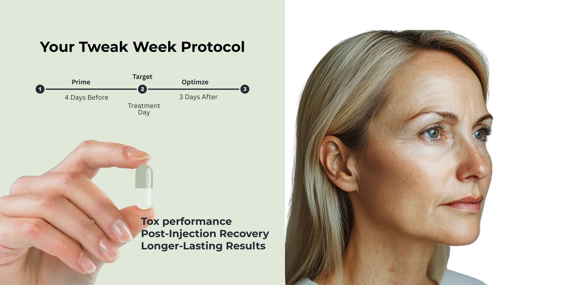 The first clinically aligned supplement protocol designed specifically to support Botulinum Toxin Type A injectables like Botox®, Xeomin®, and Daxxify®.